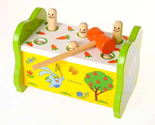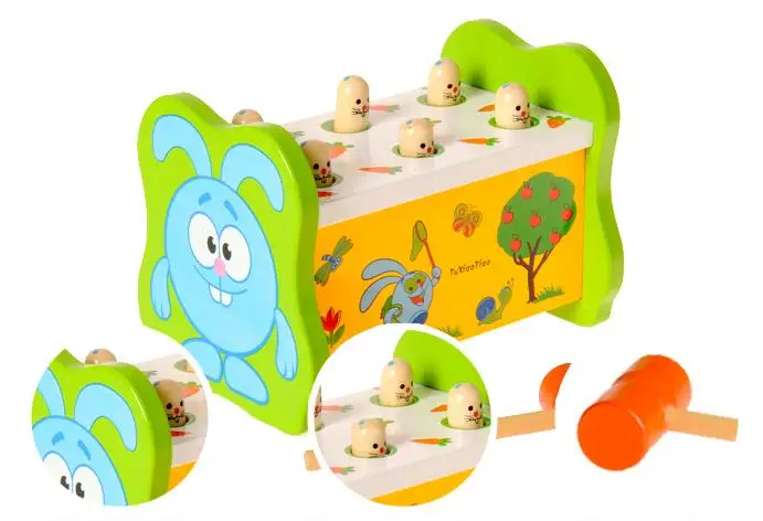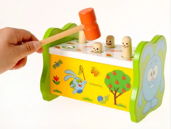 Hot Sale Free shipping Children's Wooden whack-a-mole Kids wood percussion toy parent-child interaction blow