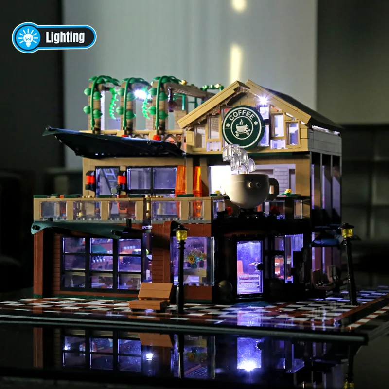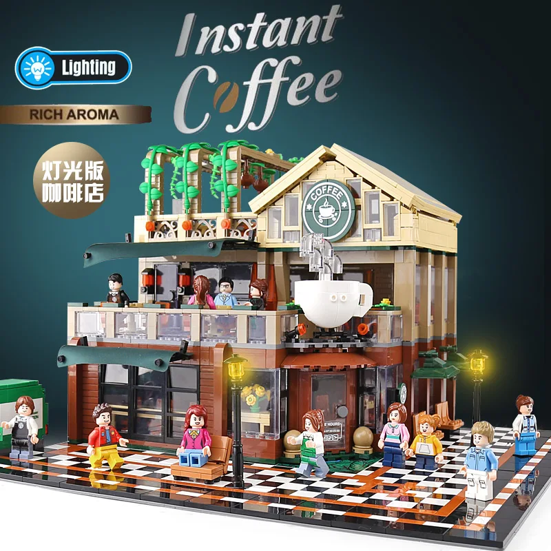 IN STOCK 601093 2095Pcs Idea City street view with LED light casual coffee house Building Blocks Br